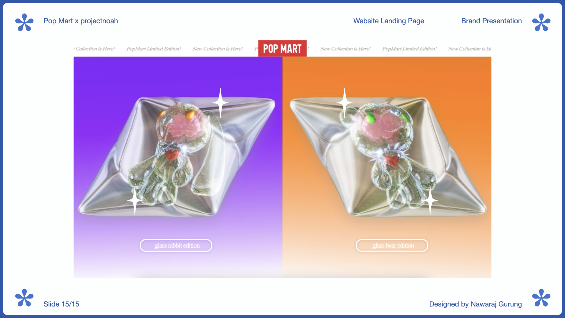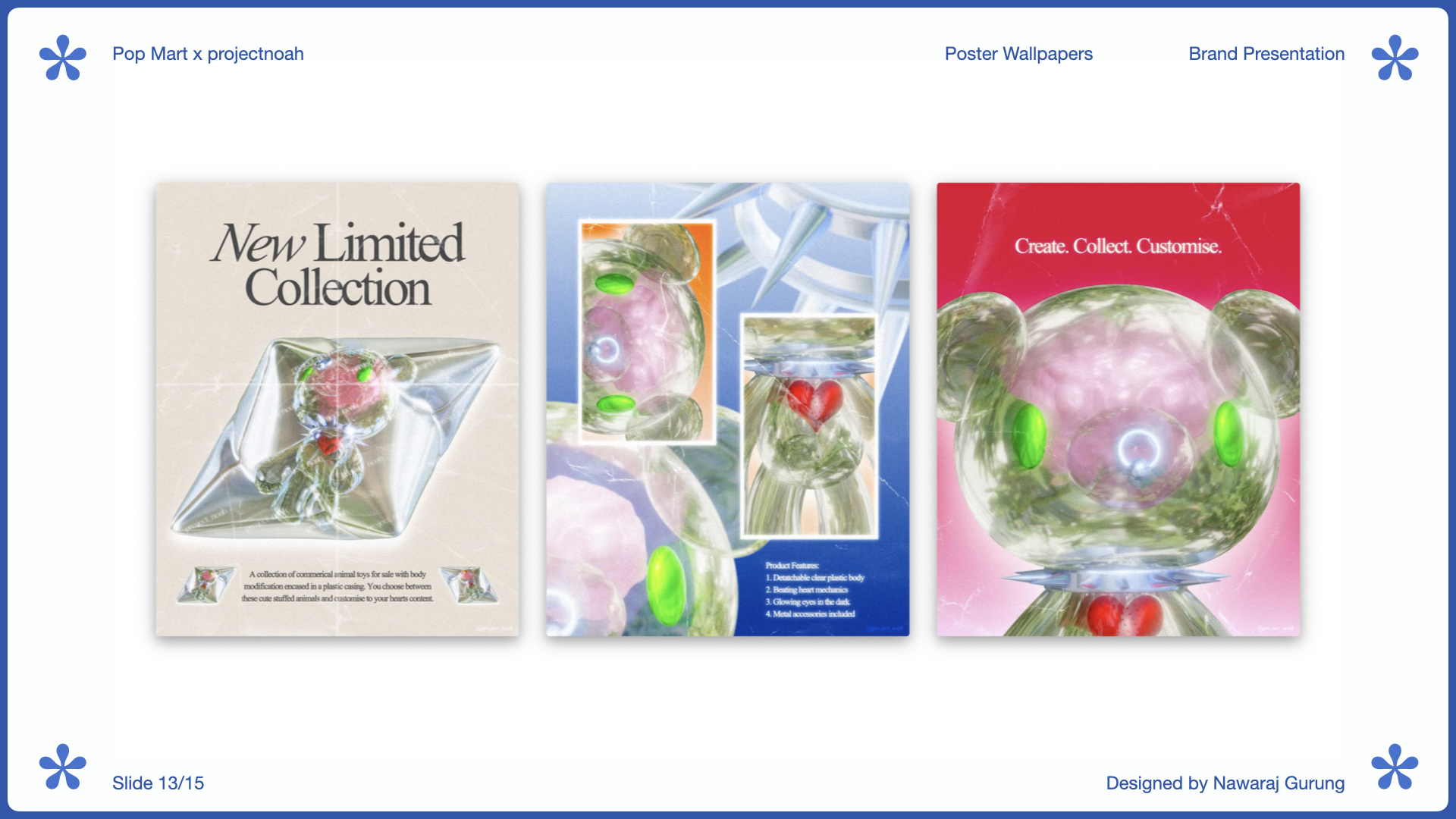 To design and create a campaign for a collective figurine collaboration concept with PopMart. Using creative and visual direction to create an appealing designs for the adults who love design and collecting figurines.